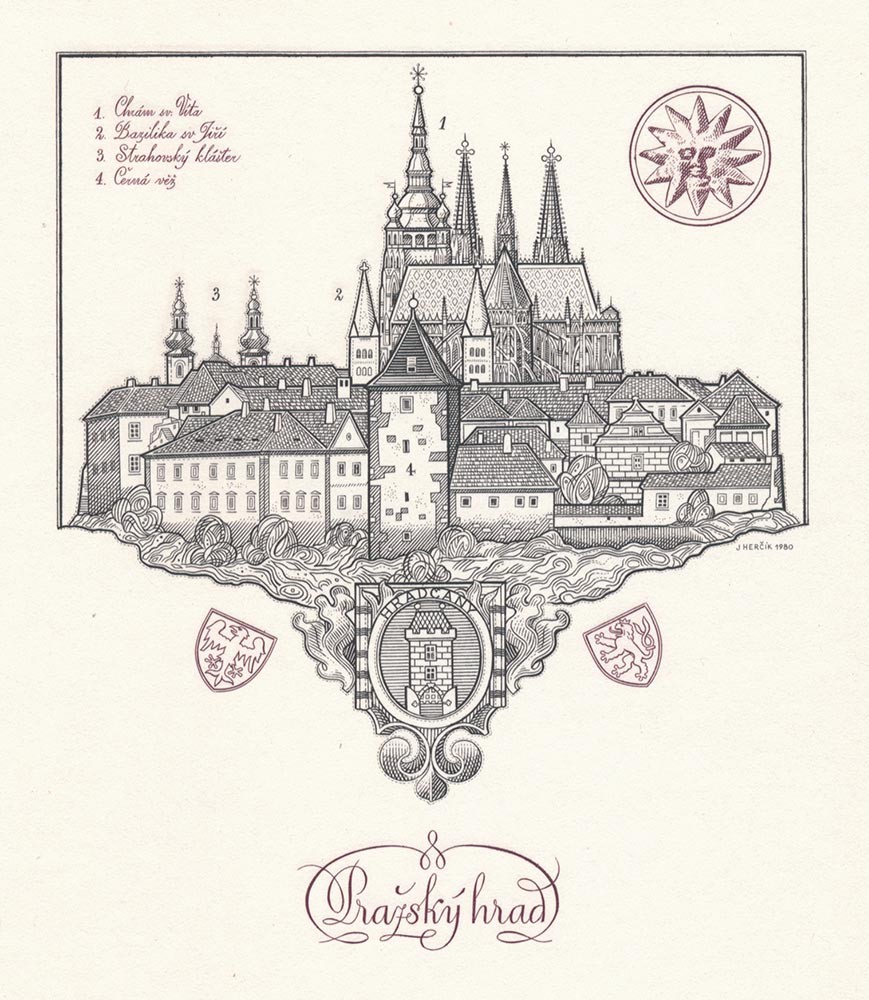 ヨゼフ・ヘルチーク プラハ城 銅版印刷