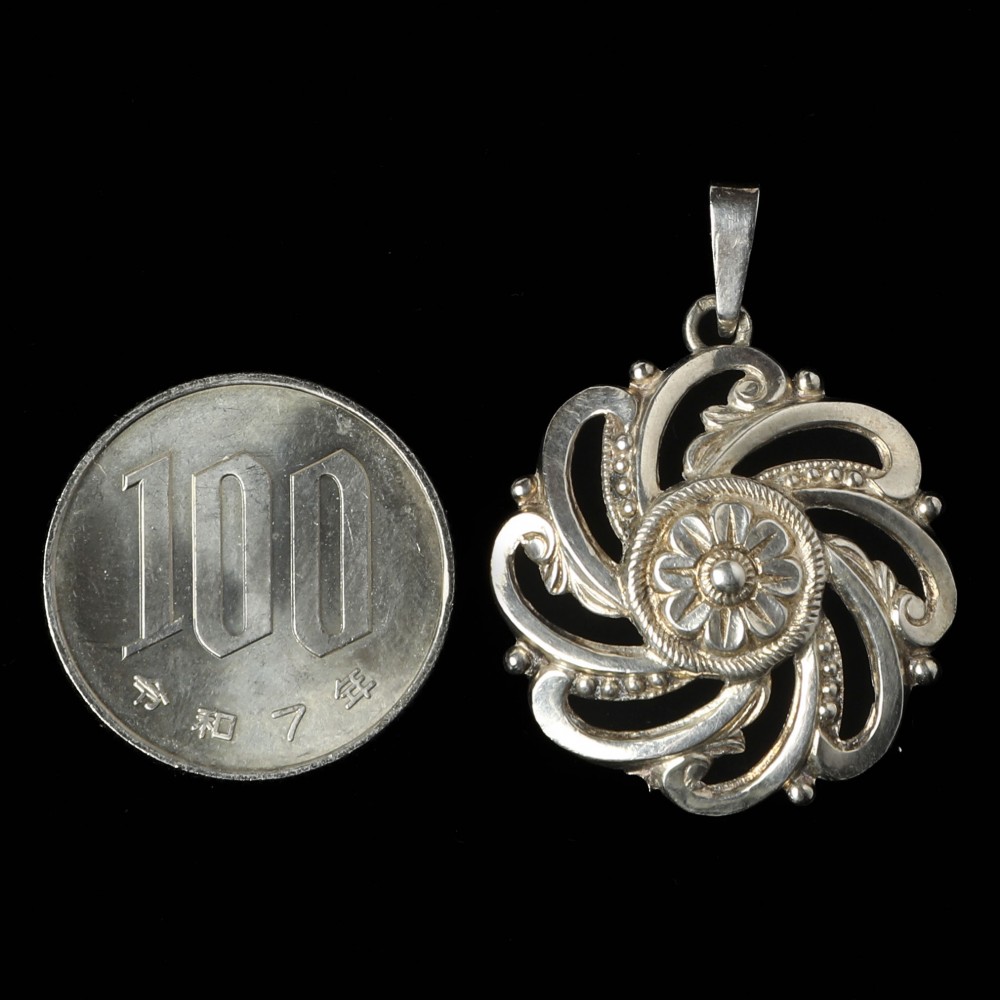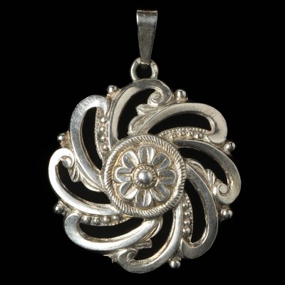> 銀製 チェコ・アンティークの花模様ペンダント