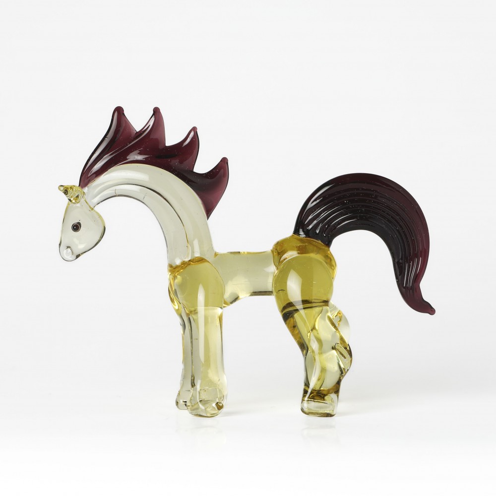 チェコはガラスの国として知られていますが、こちらはそのガラス工芸品のお馬さんです。熟練したガラス職人さんが、溶けたガラスを手作業で伸ばしたり貼り付けたりしながら成形していきます。ボディーはイエロー、たてがみと尻尾は紫のガラスの格好の良いお馬さんです。凛とした姿が美しい出来栄えです。我が家にも同じものをお迎えいたしました。2026年の干支にいかがでしょうか。チェコからのとっておきです。