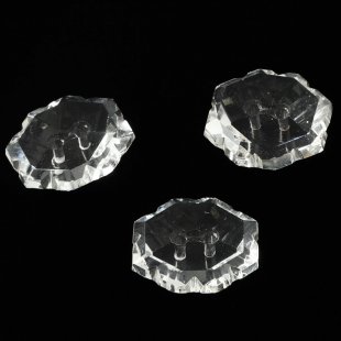 バーボフカが長年コレクションしてきたアンティークのガラスボタンからのお品です。鉛の含有量が多く反射率の高いクリスタルガラスを使用した2穴のボタンです。型打ちではなく、ハンドカットで職人さんの手によって制作されたもので、複雑なお花にょうなフォルムのガラスボタンです。カット面にキラキラと光を反射し、美しい工芸品のようなお品。100年古いアンティーク。チェコからのとっておきです。