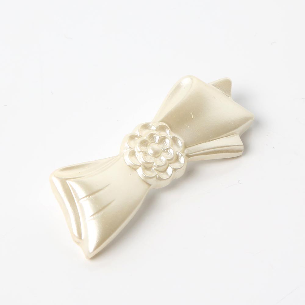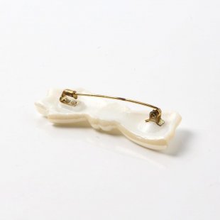チェコ・ガラスの街ヤブロネツで作られたガラス製ヴィンテージ・ブローチ。デッドストックで入手の未使用品です。1950-60年代のものです。リボンのモチーフで中央にお花のあしらわれたフェミニンなイメージの美しいブローチです。こちらは乳白色のガラス製で表面にはシャンパンホワイトの塗料が塗布されたエレガントな仕上がりです。今では作られていないこのガラスブローチ。コレクターズアイテムとしておすすめです。ピンには一点焼けの入った部分があります。写真でご確認ください。