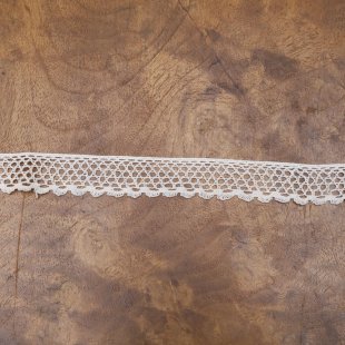 こちらはチェコスロヴァキア時代のヴィンテージ・ボビンレース。チェコのヴァンベルクという街を中心にチェコでは17世紀後半より多くのボビンレースの生産が行われてきました。こちらは20世紀前半に制作されたオールド・ヴィンテージのボビンレースです。幅は2.2cmで生成りのコットンの糸を使用した縁取り用です。シンプルで昔懐かしい感じのキュートなレース。小物やお洋服の裾につけると素敵です。状態もとても良いものです。