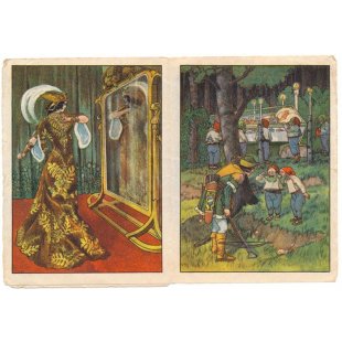 チェコの古いおとぎ話の冊子「白雪姫」。全8ページのミニミニ冊子なのですが、こちらは残念ながら最後のページが失われていて、全6ページになっています。戦前のとても古いものです。表紙を含めて3つの絵が収録されています。紙ものコレクターにお勧めの年代物です。角に折れ、また全体的に汚れ、経年の風合いがあります。見開きのイラストがアールデコ調で美しいので、訳あり品としてお求めやすい価格で出品しております。