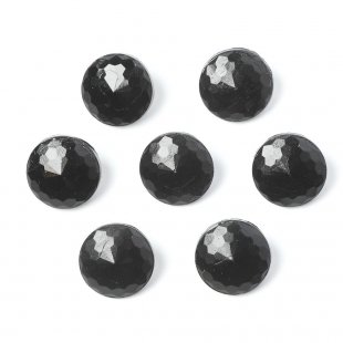 こちらはオールド・ヴィンテージのジェットガラスのボタン。ジェットガラスは太陽の光も通さない漆黒のガラスで現代では作ることのできない貴重なガラスです。こちらのガラスボタンは1.3cmの丸いボタンで、表面には細かな面取りが施されています。ハーフマットの柔らかな輝きがあり、面に合わせてチラチラと光を反射するボタンです。20世紀初頭の1920年代頃までの古いアンティークです。