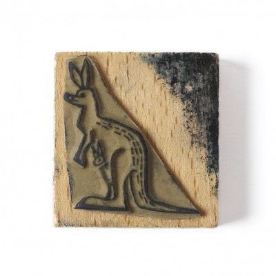 こちらはチェコスロヴァキア、20世紀中頃の古いハンコ。カンガルーのハンコです。シンプルな描画が可愛らしい雰囲気。昔のスタンプはおっとりとして趣があり今製造されている新しいハンコにない、素朴な表情があります。こちらでも昔のスタンプはコレクターに人気のアイテムになっています。古いものですので描画が若干鮮明でない部分があるものの状態は悪くありません。台の部分は木製で高さ4cm強。木の台座には経年の汚れがあります。お手紙やメモ帳にぺたぺたと押したくなるハンコ、全体的に経年の使用感がありますが古いものの味としてお楽しみ下さい。