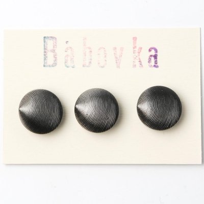 こちらはチェコスロヴァキア時代のヴィンテージ・ガラスボタン。バーボフカが長年集めてきたコレクションの中からご紹介です。ぽっこりとした形で、表面にはラインの模様、グラデーションでシルバーのお色が入っています。シックで雰囲気のある美しいガラスボタンです。現在では生産されていない貴重なヴィンテージです。