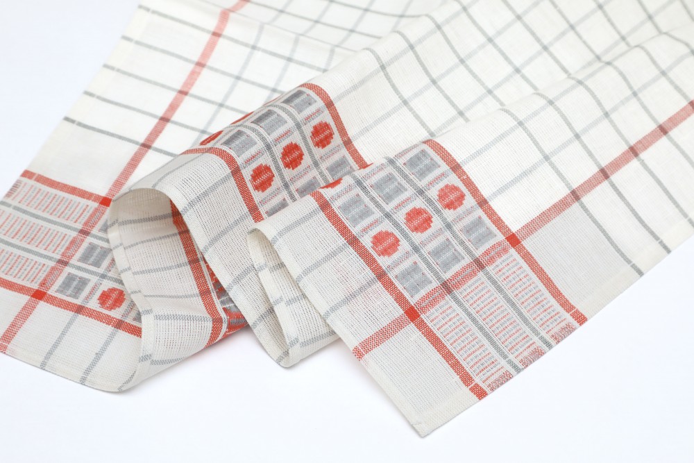 こちらはチェコスロヴァキア時代のキッチンクロス。デッドストックの未使用品です。社会主義時代のリネン製品の国営企業TEXLENからのお品です。(残念ながら中国製などのリネン製品に押され、2007年に閉鎖、今では存在しない会社です。)白地にピンクとグレーのライン、またコーヒー豆のような模様の入ったレトロで可愛いクロスです。麻の量が多いようでパリッとしたリネン特有の硬さがあります。使えば使うほど味と吸水性が出てくる優れものです。50x 70cmと割と使いやすいサイズで台所仕事に活躍してくれそう。もちろん台所にも明るい彩りを添えてくれます。布の上部にはフック用のテープも縫い付けられています。長く愛して頂けるチェコの素敵なレトロ商品です。
