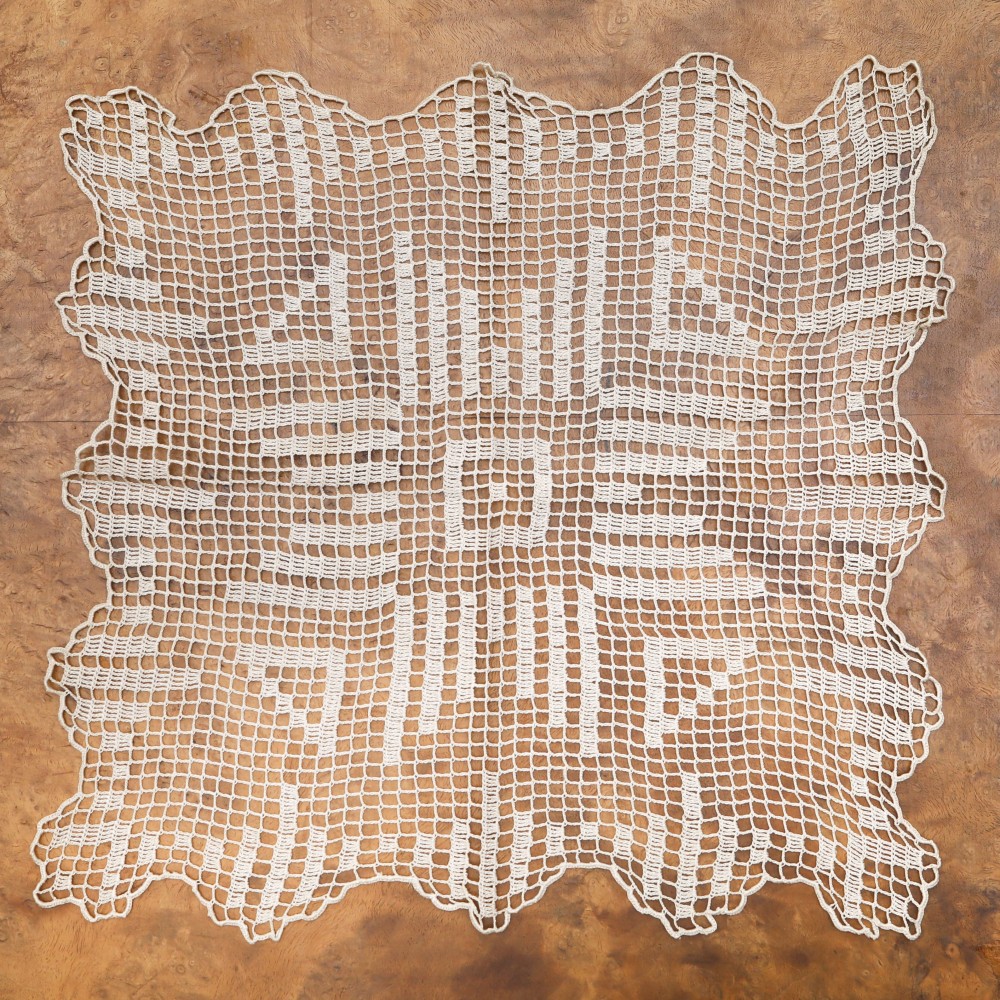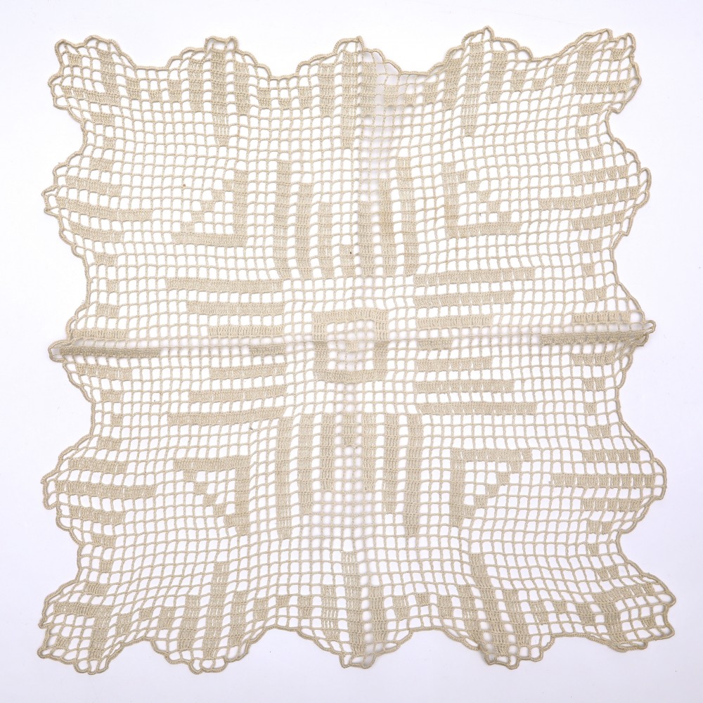 こちらはチェコスロヴァキア時代のドイリー。37x38cmの長方形の鍵編みのドイリーです。生成りの淡いブラウンの細い糸で編まれていて、素朴で素敵なドイリーです。木のテーブルなどにおくと繊細な雰囲気で素敵です。テーブルセンターや棚などのスペース、花瓶の下など、ちょっとしたアクセントを添えてくれるドイリーです。おおむね状態は良好、古き良き時代の良品です。