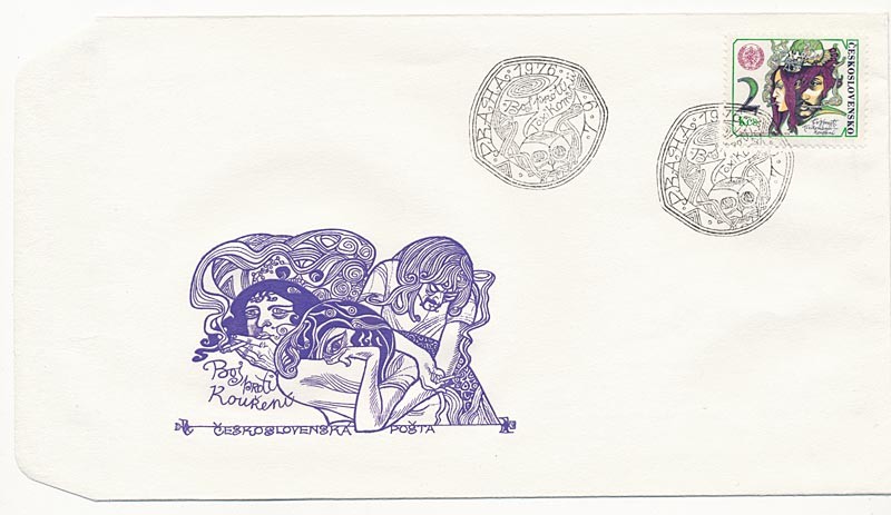 こちらはチェコスロヴァキア1976年のFDC封筒。1976年に発行されたWHOのタバコの害への取り組みをテーマにしたちょっと珍しいものです。タバコを吸う人々のイラストが、パープルのインクで凹版印刷でプリントされています。ヨゼフ・リーズレル(1912-2005)のイラストです。リーズレルはチェコでも著名なアーティストでシュールレアリズムのスタイルの絵画、またチェコスロヴァキアの切手デザインも複数残っています。切手デザイナーとして、あるいは画家として彼をオマージュした切手も近年複数発行されているほどです。デザイン性の高い彼のデザインした切手も貼られています。当時の社会主義を彷彿とさせる近未来チックなイラストが魅力的です。状態も良好です。