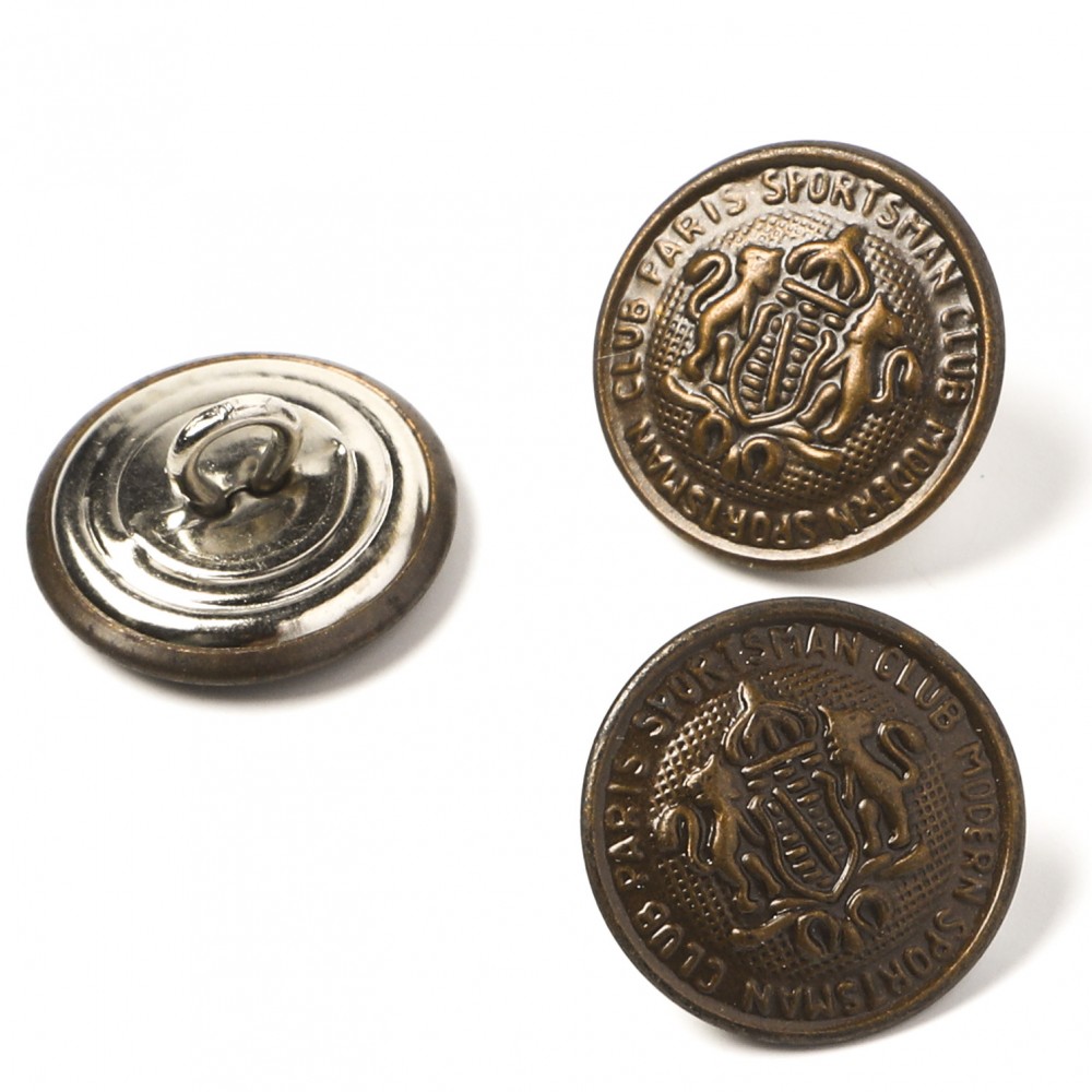 こちらはチェコスロヴァキア時代のヴィンテージ・メタルボタン。錫(すず)製の高級メタルボタンで、A B(アンティークブラウン)のお色。チョコレートのような渋いお色です。こちらは、表面にヨーロッパの王家の紋章をあしらったノーブルでクラシックなメタルボタンで周りにはスポーツマン・クラブ・パリと印字されています。ティサーのメタルボタンの歴史は古く18世紀後半にまで遡ります。工場では今でも職人さんが一つ一つ手作業で制作しています。こちらでティサーのメタルボタンの記事もご覧いただけます。こちらは1950-70年代頃までのヴィンテージ、デッドストックです。状態もとても良いものです。中間空洞ですので、水洗いの洗濯はお勧めしません。また極少量のニッケルが含まれています。洗濯される時は洋服からはずされるのをお薦めしています。ティサーのメタルボタンはとても軽く、アクセサリーのマテリアルとしてもおすすめです。