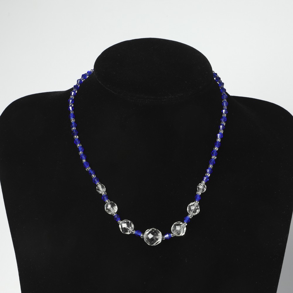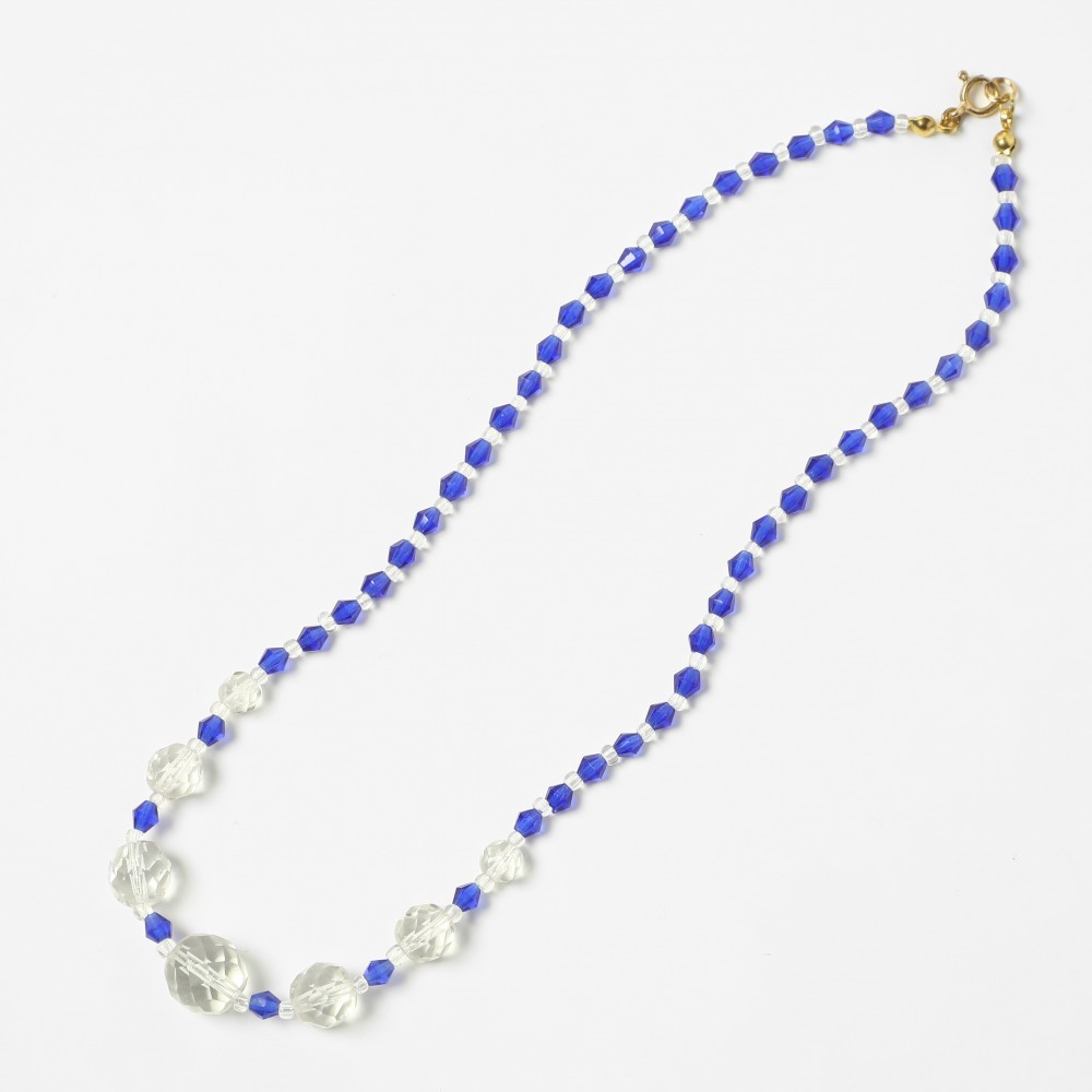 アンティーク・ガラスのネックレス クリア&ブルー 42cm