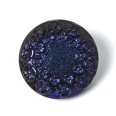 小花散る ガラスボタン 2.2cm メタリックブルー
