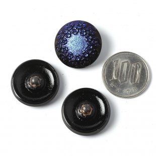 こちらは北チェコのガラスボタン工房で制作されるガラスボタン。直径2.2cmのボタンで黒いガラスを使用し、厚手のボタンです。表面には金属塗料が塗布されダークなメタリックブルーの輝き。光を柔らかく反射しシックでノーブルな雰囲気です。アクセサリーの材料としてもおすすめです。