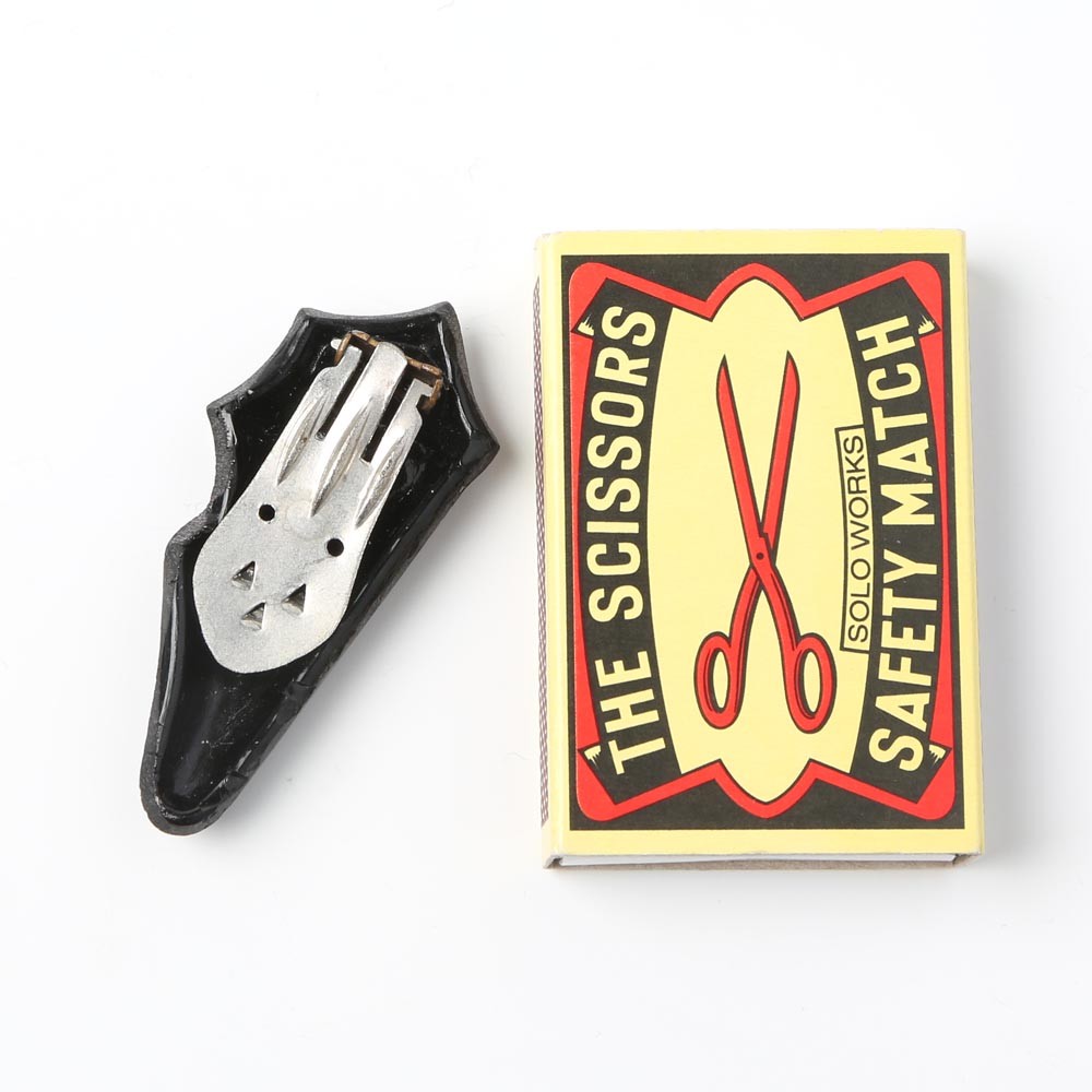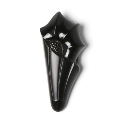 こちらは20世紀初頭のアール・デコのガラスブローチ。この当時からチェコではよく見られる漆黒のガラスジェットガラスを使用した貴重なお品です。(ジェットガラスはジェット(1億8,000万年前のジュラ紀の流木の化石を使ったコンポネント)を模して作った黒ガラスのことで今では生産できないガラスです。)傘の先とお花のコンビネーションでとても斬新なデザインです。ポケットや帽子のリボンなどに刺して使用したもので、クリップタイプのブローチです。マットな部分と光沢のある部分が分かれていて、製作者のこだわりを感じます。帯留めなどにも良さそうです。時代を超えたデザイン性の高い逸品。クリップの状態も含め全体的に状態は良好です。
