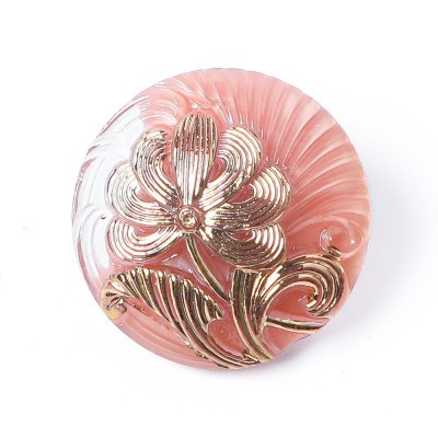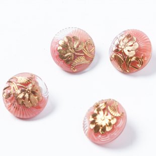 ガラスボタン 植物紋様 1.8cm ミルキーピンク&ゴールド
