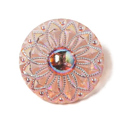 オーロラオレンジピンク お花のガラスボタン 1.8cm