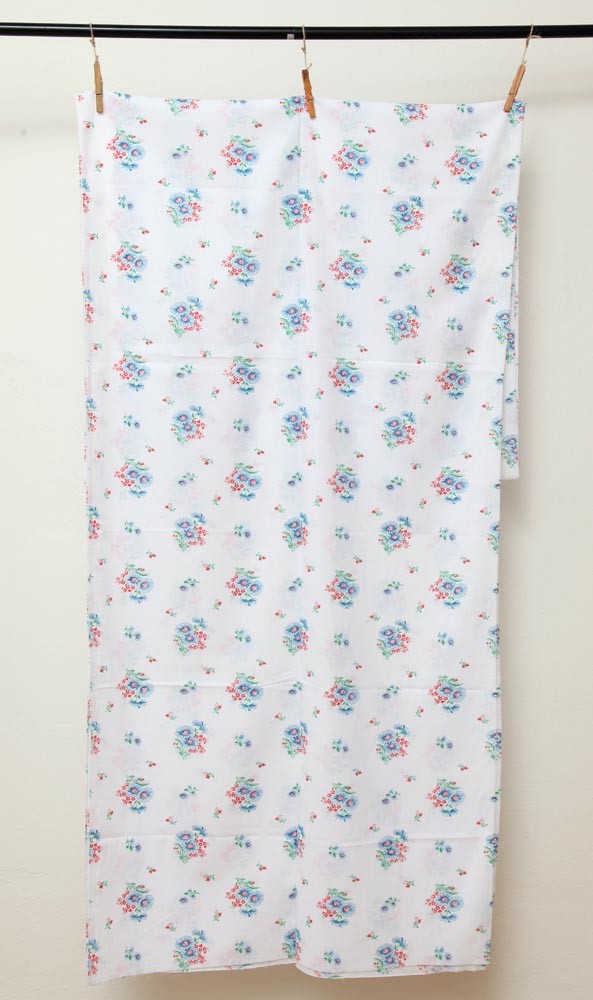 こちらはチェコのご家庭からのはぎれ。長い間大事にタンスの中で保管されていた布。大体70年代のものです。こちらの布ははぎれのため布の耳がありませんが、幅68cmの幅の布の今回は50cm売りになります。布の状態は新品の様に良好でプリントの褪せや布の傷みもありません。青いひな菊のお花が白地に散らされていて爽やかなイメージの素敵なデザインです。紅色、青、緑、このちょっと難しい色合いが、何となくチェコらしい感じがします。素材は綿100%です。比較的薄手の生地です。