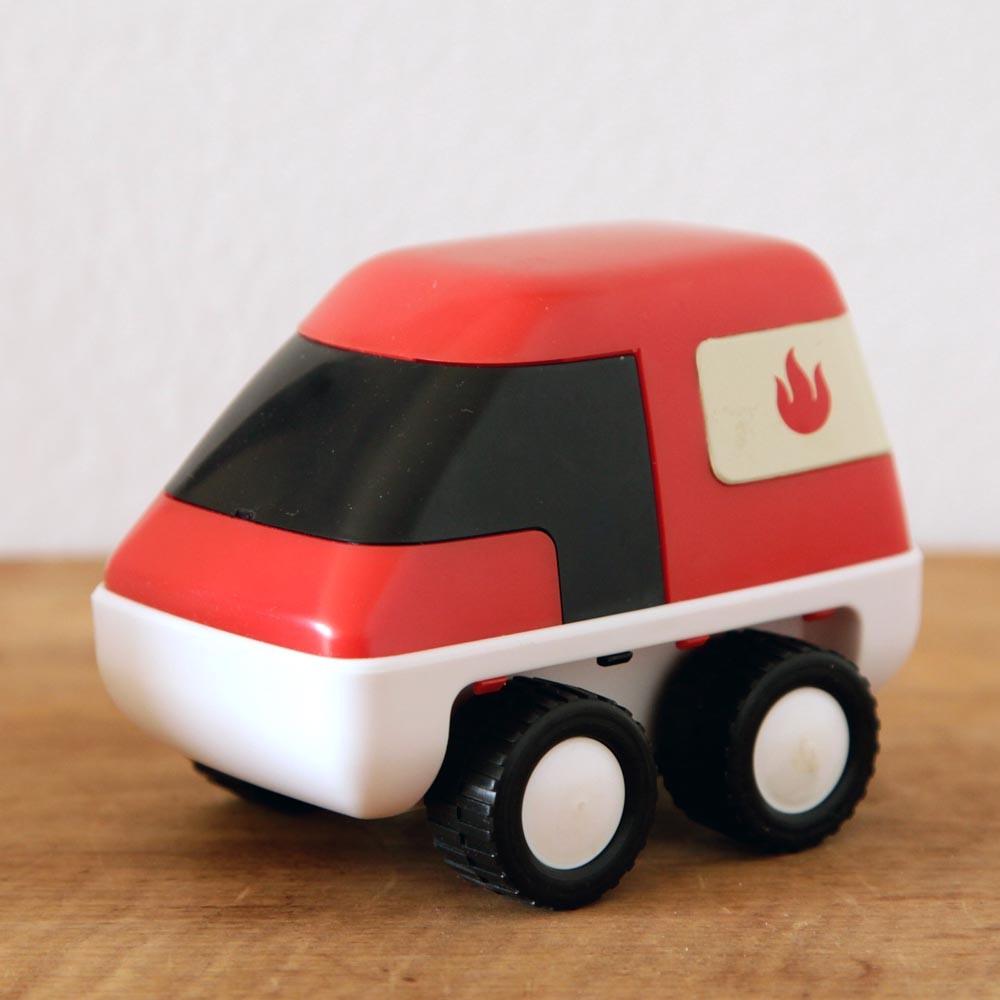 こちらはプラスティックの車のおもちゃ。めずらしいメイド・イン・チェコスロヴァキアのプラスティックの車です。デザインが丸みを帯びて、近未来的、さすがはデザイン大国チェコスロヴァキアといったところです。可愛らしさの中に無駄のないセンスの良さが光ります。後輪になめらかな速度と惰性で走る様な機能がついていて、緩やかに長く走ります。こちらは炎のマークがついた消防車でしょうか。1980年代頃の商品の貴重なデッドストック。こちらのレトロコレクターも喜びそうな掘り出し物です。箱入りのとっておき商品です。箱は軽いへこみなどあります。