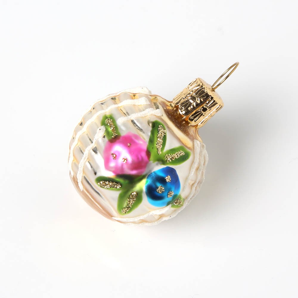 こちらは新作のチェコのガラスのクリスマス飾り。新作といっても昔からの製法で作られたとても繊細なガラス商品です。こちらはお花の描かれたぼんぼりのモチーフ。マットな白色の塗装に白いライン、ピンクとブルーの小花・・・雰囲気のあるオーナメントです。手作りの温かみがあり、クリスマスを素敵に演出してくれそうな、美しいチェコのガラス工芸です。
