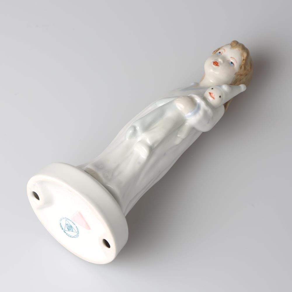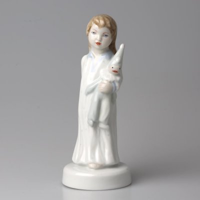 こちらはチェコスロヴァキア時代のヴィンテージの磁器の置物。ベッドに入る前のお人形を抱えたパジャマ姿の女の子のお人形です。少し首を掲げアンニュイな表情がリアルで、静謐な青い瞳が素敵な女の子。ロイヤル・ドゥクス社はチェコスロヴァキアの老舗高級磁器メーカーでたくさんのヴィンテージの磁器フィギュアが存在し、その商品は今でもチェコ人の間で根強い人気があります。こちらも例外ではなく、職人さんの製作するとても作りの良い磁器フィギュア、状態もとてもいいものです。寝室のテーブルや本棚やインテリア棚におすすめのチェコスロヴァキアからの良品です。