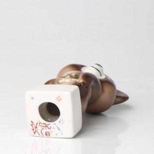 こちらはいわずと知れた1980年モスクワオリンピックの正式キャラクター、こぐまのミーシャの置物です。お客様からのお問い合わせの多い人気商品です。こちらは陶器製のミーシャで、少し横を向き満足そうな笑顔の愛らしい一品。オリンピックのベルトもお腹にしっかりついています。こちらのミーシャは濃いめの茶色のミーシャでちょっとこぶりのミーシャです。ヒビや汚れはありませんが、鼻の塗料が一部剥げています。写真でご確認ください。ズバリ日本でもこちらでも大変人気の高いコレクターアイテムです。