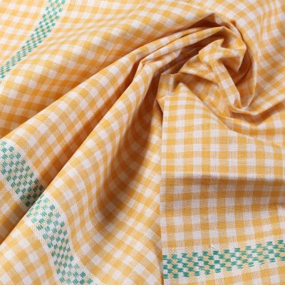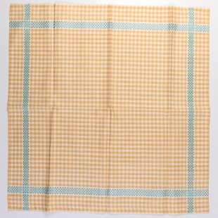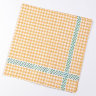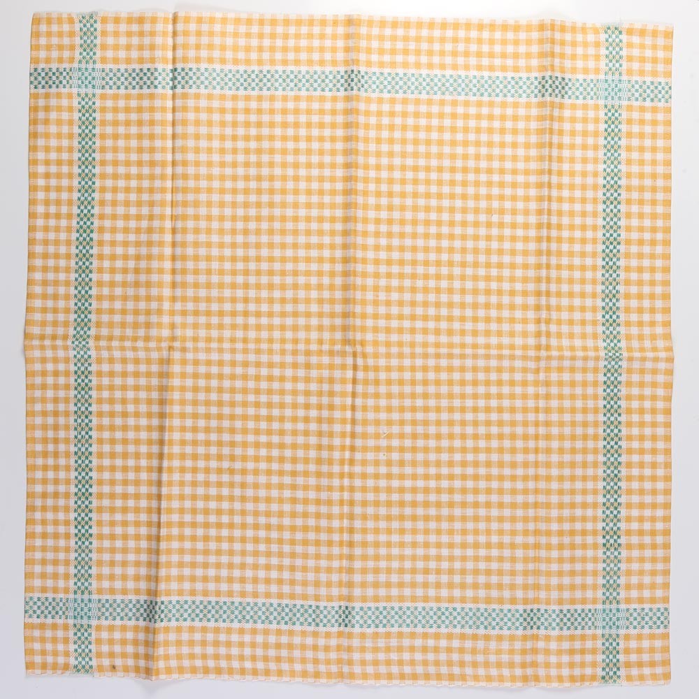 こちらはチェコスロヴァキア時代のデッドストックのキッチンクロス。麻と綿のハーフリネンのクロスです。イエローのチェックにグリーンのラインが入ったカントリースタイルの昔ながらの素敵なデザイン。麻が混じっていて丈夫ですが、麻と綿のハーフリネンですので適度な硬さと肌触りの良さで使いやすさは抜群です。裏にはフックに掛けるための耳も縫い付けられています。チェコでは麻布の生産が昔から盛んでしたが、残念ながら今となっては一件も生産工場は残っていません。デッドストックで未使用品。状態もとても良いものです。長くご家庭のレギュラーメンバーになりそうな良品です。自信を持ってお勧めいたします。