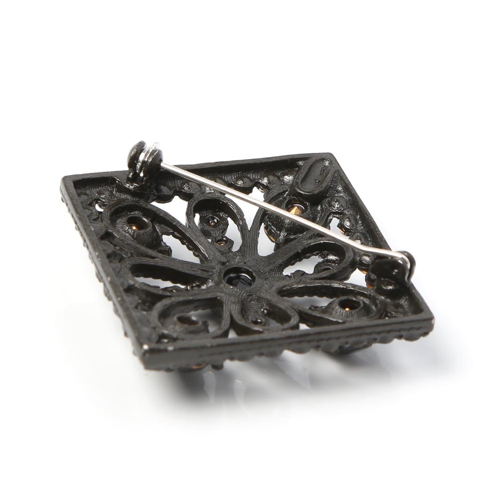 チェコ ビジュー工房からの黒ガラスのスクエア・ブローチ 大振り