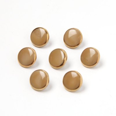 こちらはチェコスロヴァキア時代のヴィンテージ・ガラスボタン。カフェオレ色の1.1cmの小さなボタンです。小さいですがガラス肌は厚め、また周辺にはゴールドのラインが入っていて、華やかさがあります。実際にシャツやカーディガンなどにご使用にあると、洋服全体の雰囲気がおしゃれに変わります。ガラス特有のトロッとした質感も素敵です。金彩のはげもなく、状態もいいヴィンテージです。おすすめです。