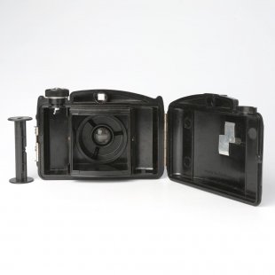 チェコスロヴァキアのプラスティックカメラ、ピオニール(パイオニア)です。1940年代後半のカメラです。このカメラは特に子供たちが始めて手に取るカメラのようなコンセプトで販売されたカメラです。フィルムはブローニーフィルムですので、今でも問題なく手に入れることが出来、もちろん実際に撮影可能です。にじんだような、ぼんやりとしたノスタルジックな独特な味のある写真仕上りでファンも少なくありません。光が不十分な状況の撮影や精密な写真には向きません。シャッターは1/8と1/25と1/100の3種類、また絞りも2種類ですが調節可能です。(レンズの表面にある1と2という突起で調節します。)チェコのおじさんたちが、子供時代に始めて手に取ったカメラとしてのノスタルジーを誘うそんな一台です。古いものですので金属部分の擦れ錆などがありますが、レンズ部分などは目立った傷などありません。機能的は問題ございません。シャッターの開閉ロックとして表示(Z→/←O)がありますまた画角は標準サイズは6x6cmです。カメラの素材ベークライト自体の状態はとてもいいものです。金属部分には色落ちや経年のヤケが見られますが、ご使用には支障はありません。とても古いトイカメラとしての販売という事をご理解頂きご購入下さい。詳しくは写真をクリックして拡大してご覧下さい。過去の時代のプラスチック、ベークライトの質感もお楽しみいただいける楽しいカメラです。ケースも付いていますが経年の傷みがあります。