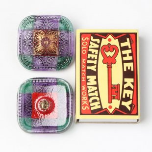 ボタン > 大きな豪華手打ちのガラスボタン 2.8cm スクエア グリーン・パープル