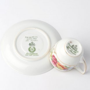 こちらはドイツの名窯、ローゼンタールのヴィンテージ、デミダスカップ&ソーサーのセットです。1930年代のものです。大胆なフローラルのプリントとゴールドのラインのコンビネーションが美しいカップ&ソーサーです。また、アメリカ特許1924年の刻印のある珍しいものです。プリントの剥がれなどもなく、ゴールドのラインもおおむねきれいに残っていて状態も良好です。90年の年月を経て今に残る貴重なヴィンテージです。普段使いにもインテリアとしても、もちろんコレクションにもおすすめです。
