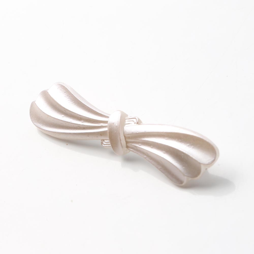 チェコ ガラスのブローチ リボン シャンパンホワイト