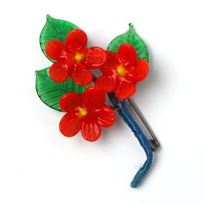 アンティーク ガラス製 赤いお花のブローチ 逸品