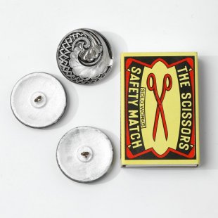こちらは北チェコガラスの街で長い間製造されてきたガラスボタンで、ひとつひとつ手で打ち出され彩色も職人さんによる手作業でのもの。世界中で愛されるのチェコのガラスボタンの最高峰です。手に取って頂けると美しいブローチのような貫禄たっぷりのボタンの王様。こちらはアールデコを思わせるような優雅な曲線を描く植物がモチーフになったデザイン。アシメトリーなデザインもまた素敵です。シックなブラック&ホワイト。裏はマットな銀色の塗料で裏打ちされているため、内側から柔らかな光を放つ豪華なボタンです。大きさも2.7cmとかなり大きめですので留め具やブローチなどに大変おすすめ。シックな雰囲気で和装などにも合いそうです。髪留めや帯留めなどにも