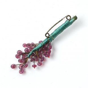> アンティーク ガラス製 紫のお花のブローチ 逸品