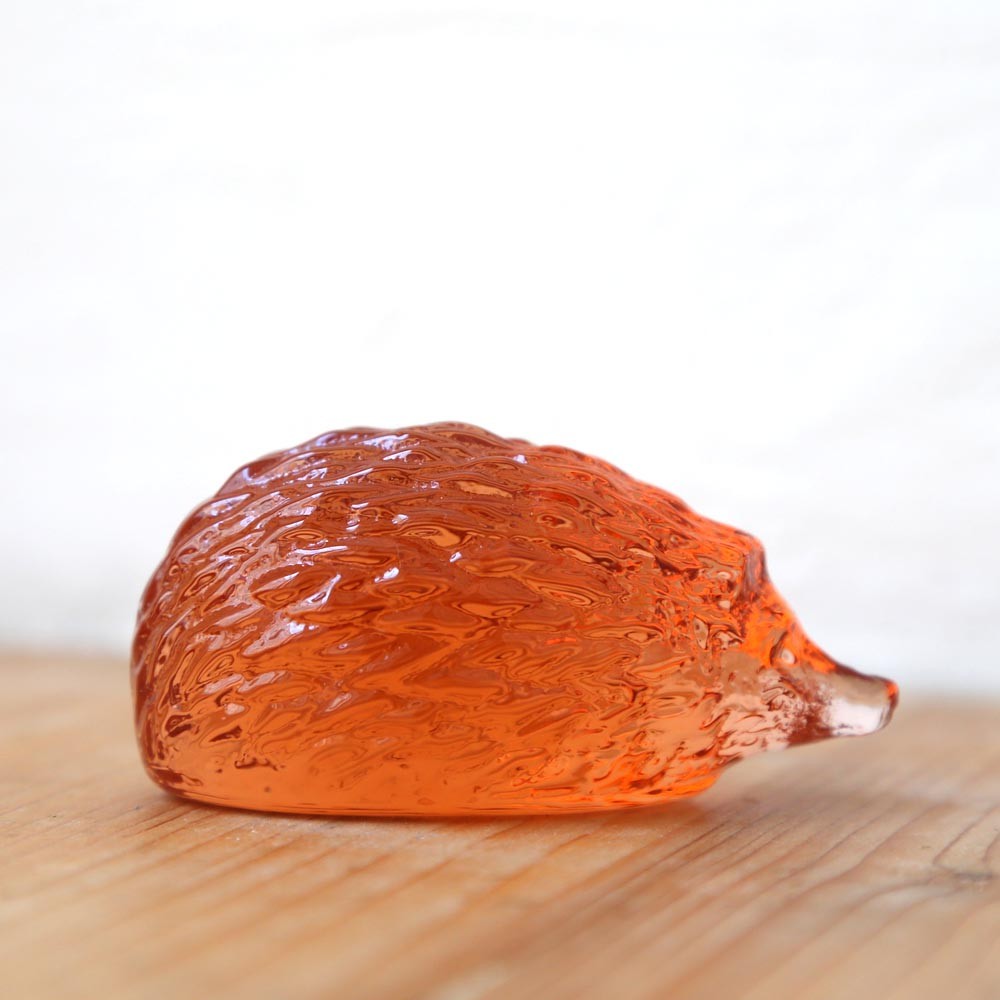 こちらはチェコならではのガラス製はりねずみの文鎮。型にガラスを流して造るチェコの伝統工芸品でこちらでも人気のコレクターズアイテムです。オレンジの透明なガラスを使用したもので、デッドストックの商品。ヒビやかけのない状態もパーフェクトなものです。おっとりと佇むハリネズミさんはチェコならではのアイテム。なかなか素敵な存在感と雰囲気があり、机周りを素敵に演出します。インテリアとしてどこにおいても、可愛らしく絵になる一品です。