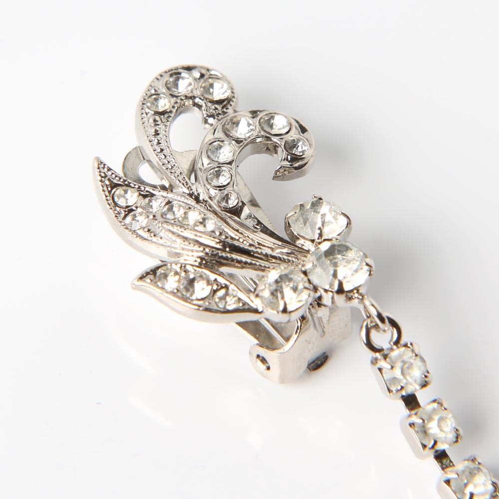 こちらはチェコのアンティークショップで入手したヴィンテージのイヤリング。クリップタイプの豪華なイヤリングです。バロックスタイルを思わせるカーブを描いた優雅な植物のモチーフに、大小のクリスタルカットガラスがちりばめられていて、キラキラ輝く美しい一品。こちらはデッドストックの未使用品ですので、状態もパーフェクト。パーツの劣化やガラスの裏の金属の劣化もないため、輝き当時のまま。また4つのラインストーンの垂れの先にはヤブロネツが得意とするイミテーションパールがアクセントにほどこされ、ゆらゆら揺れてかわいいものの大好きな私達の心をくすぐります。華やかですがデザインのバランスも良く、キッリとした印象で、大げさすぎないのも嬉しいところ。ふだん使いにどんどん活用してほしい、とっておきのチェコスロヴァキアの良品です。