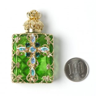 チェコ ガラスの香水瓶 グリーン クロス
