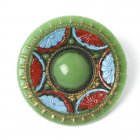 ガラスボタン グリーン&ゴールド 2つ 1.7cm