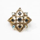 アンティーク・金属プレートとガラスのブローチ